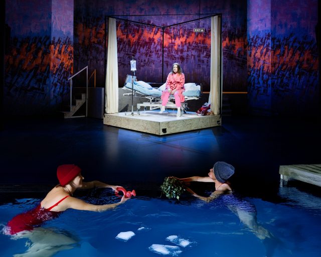 Suuren näyttämön etuosassa sijaitseva vesiallas on suunniteltu osaksi esityksen visuaalista maailmaa, mutta nyt sitä hyödynnetään myös uudella tavalla: altaaseen pääsee uimaan kesken esityksen. Kerrallaan veteen mahtuu kaksi katsojaa.