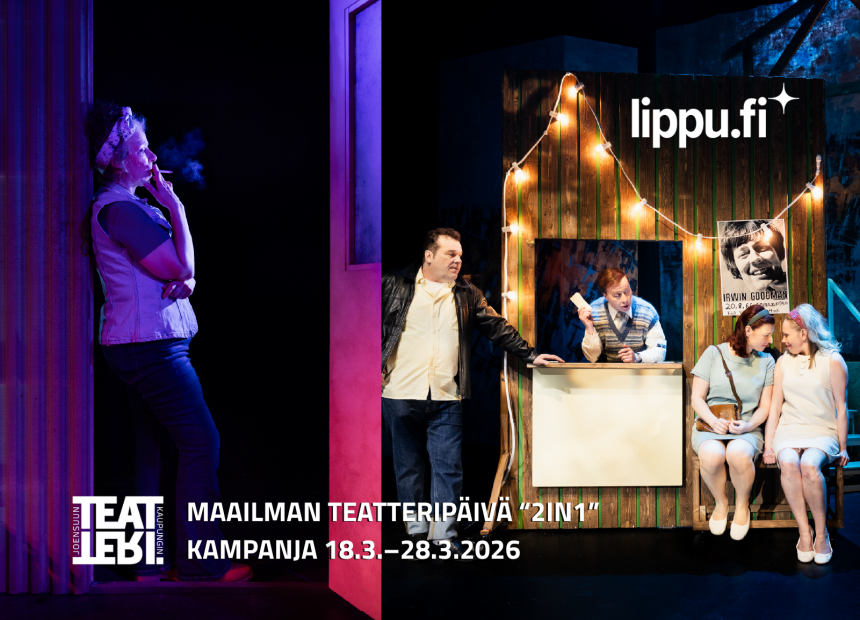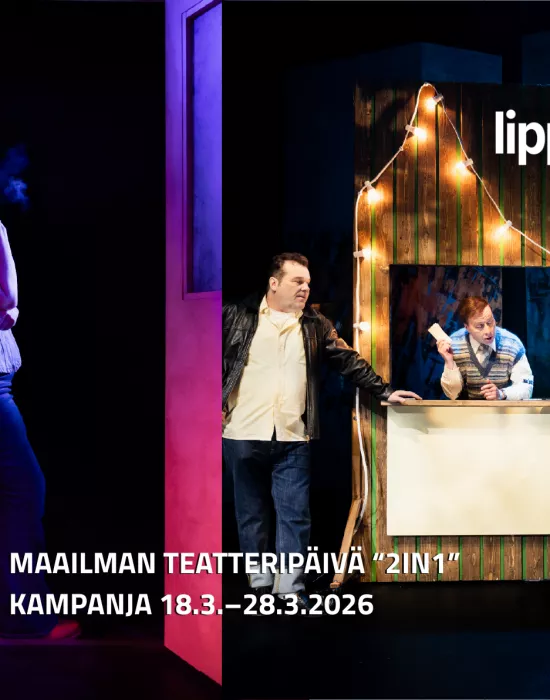 Teatteri on parhaimmillaan jaettuna kokemuksena. Maailman teatteripäivän 27.3.2026 kunniaksi tarjoamme mahdollisuuden kutsua mukaan ystävän, joka ei ole vielä löytänyt teatterin taikaa.